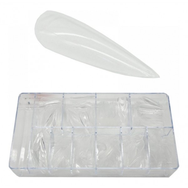 Επαγγελματικά νύχια στιλέτο σε διάφανη απόχρωση υψηλής ποιότητας κατασκευασμένα από υλικό ABS που προσδίδει στο νύχι σκληρότητα αλλά και μέγιστη ελαστικότητα χωρίς να σπάει.