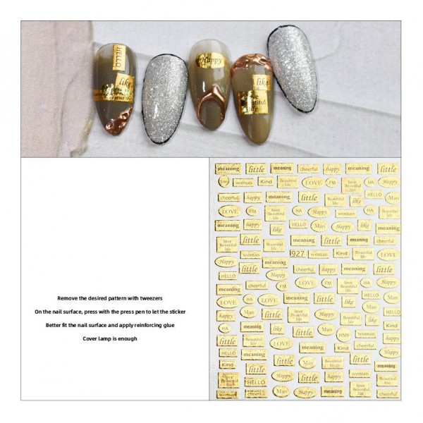 Αυτοκόλλητα Νυχιών με διάφορες Λέξεις αγάπης σε Χρυσό χρώμα, εξαιρετικής ποιότητας εύκολο στην τοποθέτηση