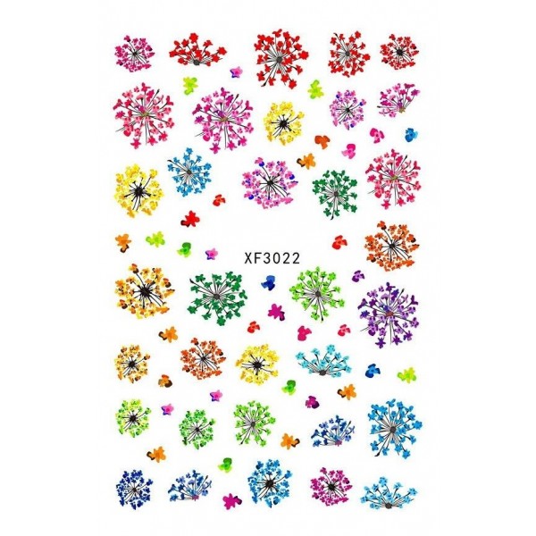 Αυτοκόλλητα Νυχιών Διάφορα Πολύχρωμα Λουλούδια XF3022