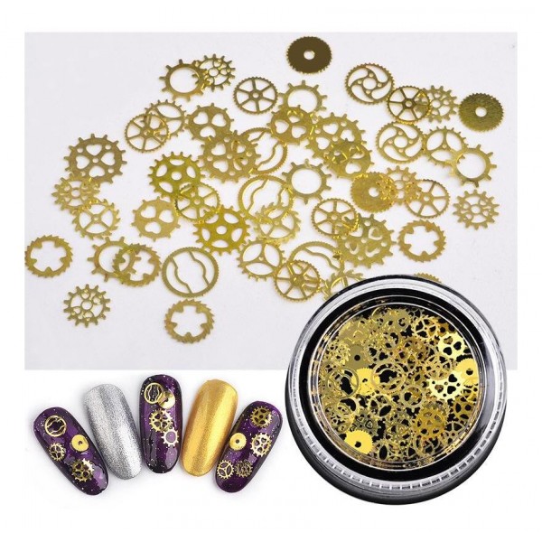 Διακοσμητικά νυχιών μεταλλικά γρανάζια χρυσού χρώματος σε διάφορα σχήματα και σχέδια