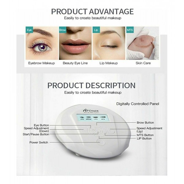 Η συσκευή μπορεί να λειτουργήσει σε 2 τρόπους με 2 τύπους μόνιμων βελόνων μακιγιάζ και μικρο θεραπείας.