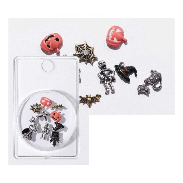 Halloween Διακοσμητικά κοσμήματα Νυχιών όπως κολοκύθα, νυχτερίδα, ιστό αράχνης και άλλα ιδιαίτερα σχέδια