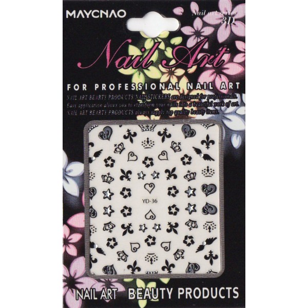 Αυτοκόλλητα Νυχιών 3D με Ανάγλυφο Μαύρο Σχέδιο YD-36