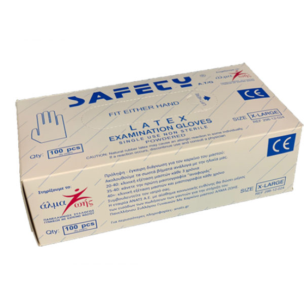 Γάντια latex εξεταστικά μιας χρήσης ελαφρώς πουδραρισμένα Safety