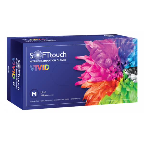 Εξεταστικά γάντια Soft Touch Vivid Γάντια Νιτριλίου χωρίς πούδρα, κατασκευασμένα από 100% νιτρίλιο (χωρίς latex).